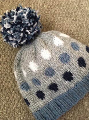 Add a dot of colour, or two or three, to your winter accessories with this double knit beanie. It’s knitted in the round, to make maintaining the tension in the colourwork easier and to minimise finishing. A multi-coloured pom pom finishes the look.