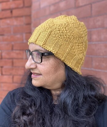 Double Seed Stitch Trellis Hat makes a fall to winter transitional hat. It is worked in the round from bottom up, beginning with a Rib Pattern that seamlessly flows into a traditional Trellis Motif Pattern filled in with Double Seed Stitch Pattern, continues and alternates with trellis motifs filled in with Reverse Stockinette stitch. Uses the stretchy Bulgarian Cast-On for the larger size and Long-Tail Cast-on for the smaller size.