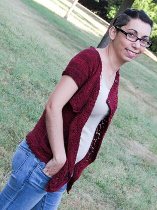 This cardigan features an easy combination of plain stst and lace panels, short rows to shape the back neck and raglan sleeves. The garment is worked in different sections. The body and the sleeves shaping are worked first, from the top down. The right and left front are worked sideways in lace pattern by picking up stitches from the body. The edgings are picked up in a second time, button and button holes will be included in the neckline edging. Lastly, the sleeves will be worked in the round. The pattern includes directions for short and long sleeves.