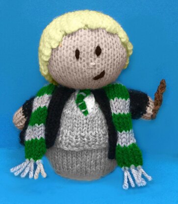 This cute Draco Malfoy from Harry Potter inspired knitting pattern can be used as a chocolate orange cover or stuffed using the base pattern to make a lovely 13 cms soft toy.