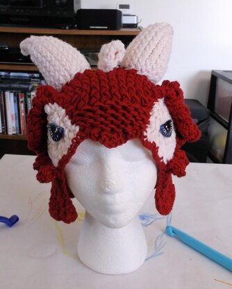 This was done with the 44 peg 1/2 gauge CinDwood loom, but pattern includes 36 peg loom. The pattern uses lions brand hometown yarn, you will need a full skein of your base color, and a skein for your eye area and spine, then a skein for your horns. This is a difficult pattern and another pattern I would not suggest for beginner knitters. Please try the owl hat first to get the general idea of the feel of how this kind of hat is put together. You will need polyfil and some crafting clay to create eyes for this project.