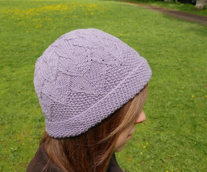 A hat with a dragon scale texture and seed stitch.