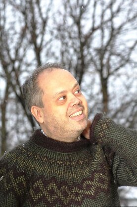 This is a warm sweater in Tunisian crochet inspired by traditional Icelandic sweaters. This means that the sweater is crocheted in the round and has a yoke decorated in a style similar to the pearl embroideries that can be seen in the Greenlandic national costume. The pattern includes two different versions of yoke decorations as well as a number of different decorations to be placed around waist and wrists.