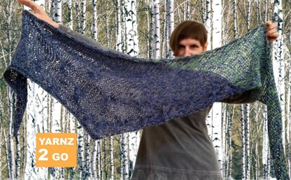 Two striking colors and simple, yet intriguing cables make up the Drama Queen shawl, named after one of the yarn colors used. This shawl is knitted sideways, starting at the skinny green end. The contrasting color portion continues to grow with a one sided cabled edge to a staggered cable design at the other end and finally a Garter stitch edge. This one offers you many styling options, due to the length.