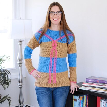 The Draw The Line Crochet Sweater pattern was designed for you (a modern crocheter who loves to acquire new crochet skills). You will have fun as you learn to add color and interest to your crochet sweater patterns with surface crochet.