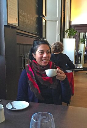 A small jolly striped shawl with a bold daisy motif bouncing along the waves of the Feather and Fan stitched based lace pattern. The slow self-striping/ombre yarn stripes alternating with the solid colour stripes adds to the strobing movement across the waves. The combination of simple lace patterns, with plenty of plain knit and purl rows makes this a fairly simple shawl to knit, with enough detail to keep you interested. This is a chart only pattern. A wide triangular shawl, worked from the top edge to the outer edge, starting with a garter stitch tab. Finished measurements - Width 172cm, 67.75in, Depth 53cm, 20.75in. Yarn - Main Colour: 1 ball Schoppel Wolle Admiral 4 ply, 420m/459yds, 100g, (Brown is shown); Contrasting Colour: 1 ball Schoppel Wolle Zauberball 100, 100g, 400m/437yds, (Hot Iron is shown), only about 238m/260yds is needed for the contrasting colour. This pattern has been test knitted.