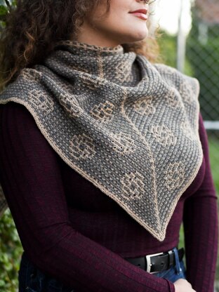 Step into fall and winter with this flowery patterned triangle to keep things light and fun when the skies are gray. Worked top-down in two sizes (petite/tall), the repeating mosaic stitch is anything but boring—especially when worked with a bright gradient option (it might be even more fun to knit than it is to wear!). Bright colors not your thing? Then try it in a pair of low-contrast neutrals for a super-subtle jacquard effect that defines sophistication. Deceptively simple to work, using just one color per row, the garter-based motif is simple and soothing—a great option for a beginning colorwork project and amusing fun for experienced knitters.