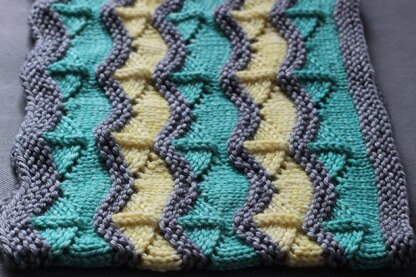 Dreams of Omaha is a cowl featuring thick lace stripes divided by garter stitch. The cowl is worked entirely in the round. Pattern is both written and charted.