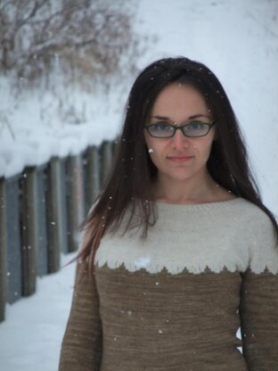 Knit from the top down in one piece, Drift’s Ridge features a seamless construction, simple colourwork, and long sleeves.