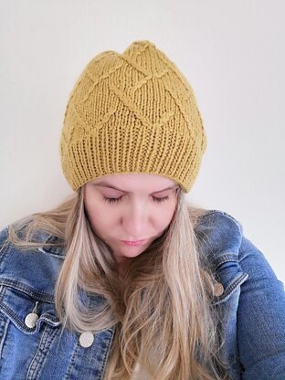 This is a lovely snuggly hat, with an easy cable pattern. Working in the round, it is a 10 stitch repeat around the hat. The pattern is both charted and written, so you can work in your most desired way. Inspired by twigs of driftwood, this simple, yet effective pattern branches up the hat.