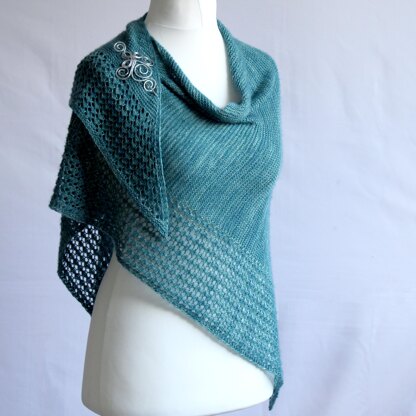 Driùchdan (dewdrop in Scottish Gaelic) is named for the delicate lace pattern that falls from the top like little beads of dew. With masses of cosy and luxurious garter stitch for easy knitting, surrounded by a simple and easy to learn lace pattern, this asymmetrical shawl is a fun and engaging knit! Designed with three sizes in mind, you can pick the one that works best for you! Knit it with 100g of 4 ply weight yarn for a neat shawlette or with 300g for a shawl that almost doubles as a blanket!.