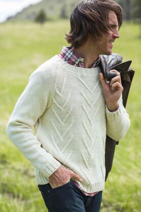 Ride off to the coast in style in the Dual Sport Pullover. The cable motif, inspired by rippling sand patterns left by retreating waves, embellishes the front and back of this simple and wearable raglan sweater.