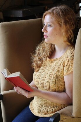 The Dublin Tee was inspired by a trip to Ireland. Not knowing what the weather would be in May, balmy or chilly, I thought layers were essential. This lacey cabled tee-shirt was born! Knit from the bottom up with underarm gussets and a raglan/saddle shoulder shaping, it is fun to work up. You MUST achieve the correct gauge and choose yarn wisely to have the best results. There is negative ease built in due to the large amount of stretch inherent in the lacey cable. Have fun layering over camis and tees and under cardigans or jackets.