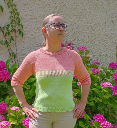 It is worked top down, with raglan sleeves and a slightly scoop neck on the front.