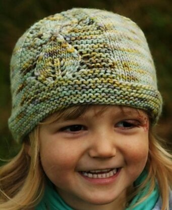 This pattern is for a beanie style hat with a leaf motif. 'Duilleog' is Irish for 'leaf'. Knit in the round from the bottom up, this hat starts with a garter stitch brim, which continues up over one segment of the hat with a leaf motif on it. The rest of the hat is worked in stocking stitch.