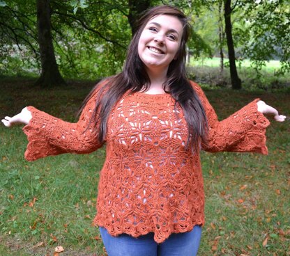 Dulcie was designed as a elegant sweater to flatter larger ladies. The original was made using a alpaca blend yarn, which enhances the drape, however it can be made with a wool yarn, which will result in a more cuddlier sweater.