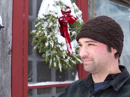 A squooshy embossed diamond hat with a split garter stitch brim. Dunkelipa is named after a dark IPA beer Neil was brewing up the same day I brewed up the pattern.