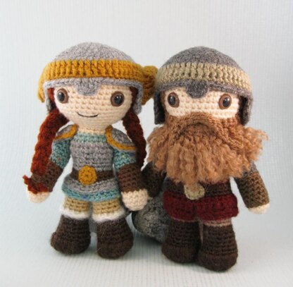 I have made a selection of three male and two female dwarves with different clothes and hairstyles, so you can decide exactly what you want your dwarf to look like. There are also several choices of separate clothes, armour and weapons to crochet for your dwarf.