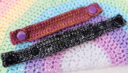 This pattern is adaptable for the length you need by adding to or subtracting from the starting chain if you want, but adding extra snaps to the ear saver makes it adjustable in size too!