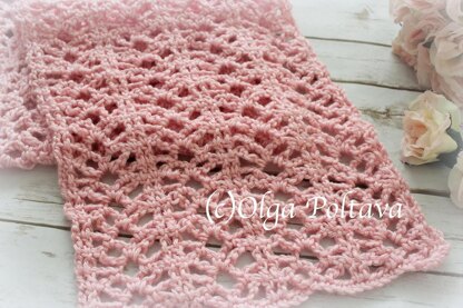 This is a pattern for a crochet scarf, made with worsted weight (category 4), 100% acrylic yarn and size H/8 (5 MM) hook. The finished measurements are about 60 inches long and 10 inches wide (about 600 yards of yarn needed).