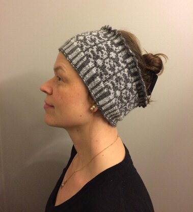 This is a quick and stylish ear warmer, knitted in fair-isle technique with two colors. The pattern is written in text and with a chart for colorwork. I did it in two shades of grey, but any two contrasting colors can be used.