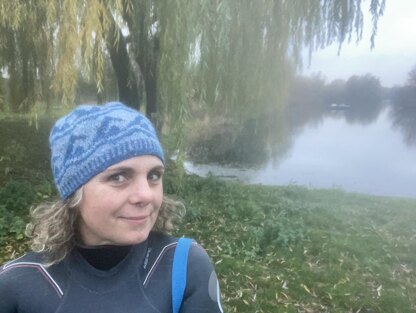 I designed this pattern to mark my first wonderful experience of open-water swimming in the winter season! Asking my swimming buddies to suggest a name for this design, Patrick, a legendary swimmer of the local lakes I swim to, suggested the name of Easing flow, which perfectly describes the effect that open water swimming has on us that are practising it!