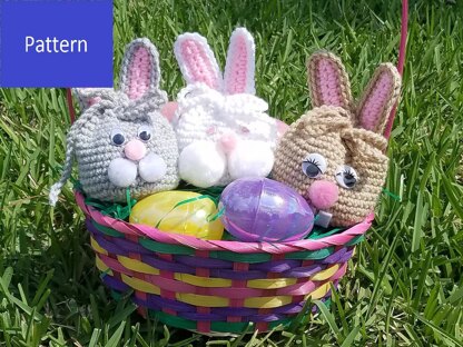 Crochet an Easter bunny goody bag for your child's basket and fill it with treats. Make several in Easter colors for basket fillers, hostess gifts, or teacher gifts. Each bunny bag takes less than an ounce of worsted yarn, so it's a great stash buster!