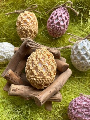 Depending your yarn and hook size, the bag for eggs may be larger or smaller.