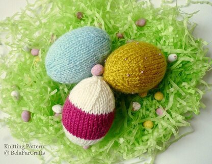 These lovely knitted eggs will add to your Easter decorations scattered on your tables, filling a bowl or hung as ornaments. I used straight, single-pointed needles and oddments of yarn, which I have included in the pattern. Quick and easy knitting project (and rather addictive), you'll have lots of eggs made in no time!