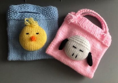 This pattern includes 4 different faces for the 2 types of bags. Bunny rabbit, chick, lamb/sheep and duckling