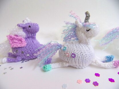 body of the unicorn is knitted with in the round with dpns, horn and ears are knitted flat with two needles