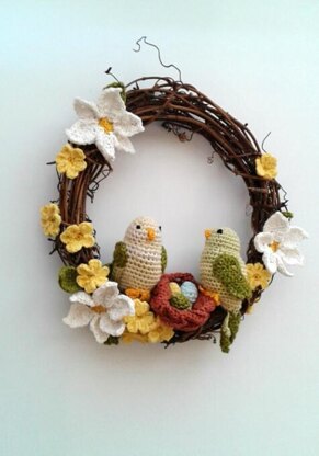 Spring Wreath with Birds Family. Door decor Many pictures have been used to better visualize each step.