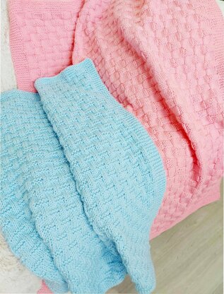 Both blankets are in an easy Knit design, with just knit and purl stitches.