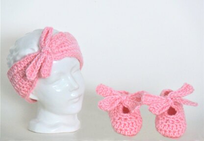Sweet Bow Headband and matching Slippers for your precious little baby girl. So easy and works up fast. Ties are worked into the body of Slippers and Headband, so are very secure. Option to make the Headband narrow or wide. Do craft markets or donate to charities? These are a breeze to do so you’ll be able to make lots fast!