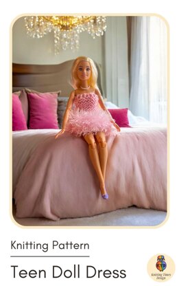 The knitting pattern is suitable for teenage dolls such as Babie and Sindy. It is a very easy Barbie or Sindy dress knitting pattern that is quick to knit using a small amount of DK 8-ply yarn.