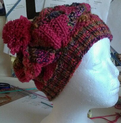 Knitting Entrelac in the round can pose a challenge, BUT my design knits the Entrelac portion flat. After seaming the edges together, you'll pick up stitches with a circular needle to create the ribbed brim in the round. The top is made by gathering the edge.