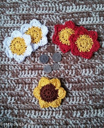 This is my favorite little motif! I have used to create several things now - so versatile.Materials You'll Need: DMC Six-Strand Embroidery Floss - Flower Center (CA) Requires 2 Skeins, and the Flower Petals (CB) Requires 3 Skeins [or 45 yards of Lightweight #3 Yarn],- H8/5mm Crochet Hook, Tapestry Needle for Weaving in Ends, Size 4 [⅝” (1.6 cm)] Snap Button, Sewing Needle with Matching Thread (I recommend Silamide thread) and High Temperature Hot Glue Gun and Sticks, or Choice of Fabric Glue