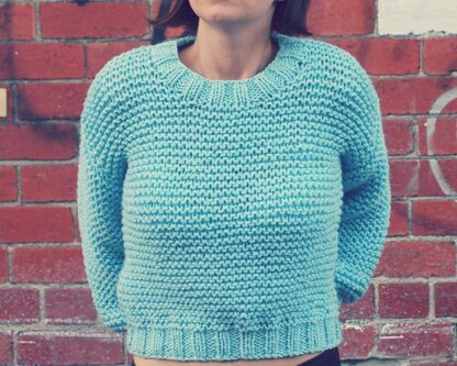 Sweater sits on the hips to give a midriff look but this can easily be adjusted to suit. Sleeves sit just above the wrist and are puffy. You can easily lengthen or shorten the sleeves to suit yourself.