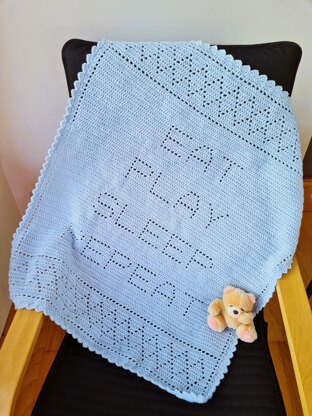 This cute little blanket summarises perfectly your little baby's world: Eat, Play, Sleep, Repeat!! This would be a wonderful addition to your baby's bedroom or it would make an extra special gift for a friend or family member.