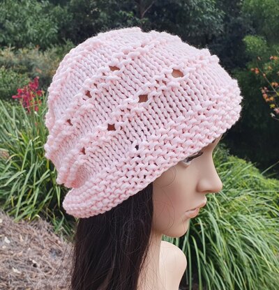 Ebony - Eyelet stitch beanie with a garter brim, sizes 2 years to lady