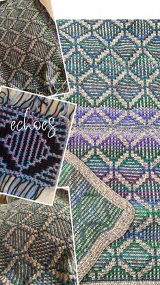 Echoes is a repeating pattern created using overlay Mosaic technique. The repeat consists of 22 stitches x 28 rows, allowing for easy customization for anything from a place mat, to table runner, king size blanket, scarf, etc.