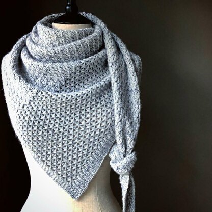 Eclecticity is an asymmetrical triangular shawl, knit flat from the left tip to the right edge. Its eclectic combination of richly textured stitch patterns is inspired by my love of architecture and background in cabinetry design.