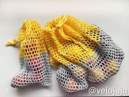 Bring your own bag to a market.-There’s so much litter in our lives already, that it’s important that we don’t produce more. The first and easiest step — is not to use plastic bags for each fruit and vegetable you buy. Make yourself a couple of stylish bags and take them with you every time you go to a market. You can put your yams and your broccolies into these bags and bring them home. -The description is for two sizes, but you can always adapt it for your needs. -The bags are made of cotton, so they are machine washable. -Use the thinnest cotton yarn you have to make the bag as light as possible and 2mm crochet hook.