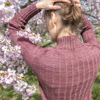 Edwardian Sweater is a funnel neck pullover with a subtle texture and a feminine touch. The funnel neck and the longer sleeve ribbings (with a little twist) vaguely resemble a typical style of clothing in the Edwardian era.