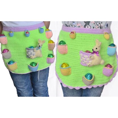 Crochet egg apron for a child or adult. An egg-cellent egg collecting apron. I have created these aprons for an Easter egg hunt. But, they also can have a farm-life use with the chicken egg gathering. In this case, do not add any decorative stitches, except the rabbit and make as many egg pockets as you can fit on the apron comfortably!