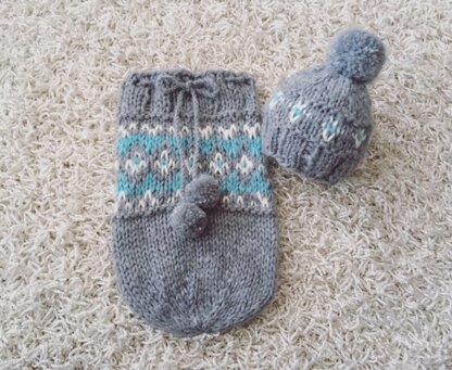 This is a downloadable PDF pattern for the knitting of this Eider sac and beanie set