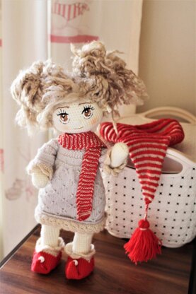 The outfit is completely removable and consists of a beautiful dress knitted with “Snowflake” pattern, a long cap with a tassel on the end, a striped scarf, panties and Christmas Elf shoes.