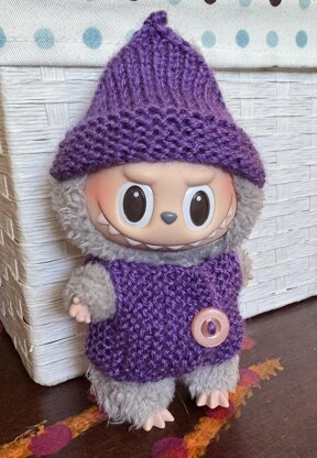 Half the fun of collecting toys is dressing them up in tiny clothes! These elfin hat and vest sets work up quickly and make great gifts for toy collectors. The vest is knit flat in one piece, and the hat is made in two pieces and sewn together at the seams, with a hole at the top for the keychain. They fit the most common types of plush keychains and would work for many other plushies of a similar size. You can use any kind of light or DK weight yarn, but my favoritefor these is Lion Brand Bonbons; one hat and vest set uses two mini skeins.