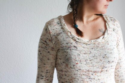 It’s knitted in once piece, from the bottom up, seamless. To shape the sleeves, some stitches are picked up along the armholes, worked with short rows and then knitted in the round. And finally, the fine twisted neckline gives its particular charm to this pretty basic pullover.