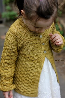 Size and Finished Measurements Sized for 6 months (12 months, 2, 4, 6) {8, 10, 12, 14} years *Chest circumference (closed):*19 (20½, 23¾, 25½, 26¾) {28½, 30, 31¾, 33½} inches 48 (52, 60, 64, 68) {72, 76, 80, 85.5} cm